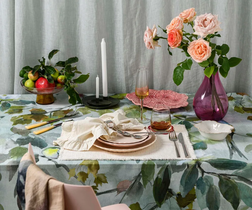 Hide a worn-out timber table and imbue your home with colour and pattern in the flick of a single tablecloth. It’s difficult to deny – there’s just something inviting, exciting and, quite simply, glorious about a colourful tablecloth. It can take a humdrum mid-week meal and turn it into an event. Enhance the effect by setting the table with gorgeous dinnerware and cutlery.