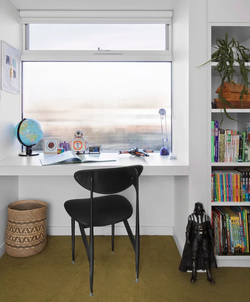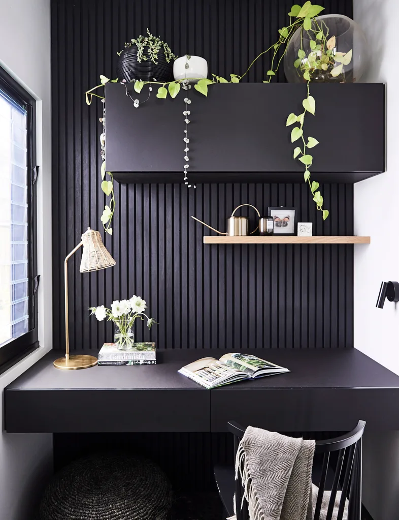 To make your workspace feel integrated with your home, deck it out in colours and materials that echo the rest of the room. If your desk is in your living area, choose a desk chair with a bit of style so it can be used as spare seating. If your office is in a cupboard or nook, you might want to line the back wall with wallpaper for visual interest, add open shelves and even install a downlight in the closet ceiling.