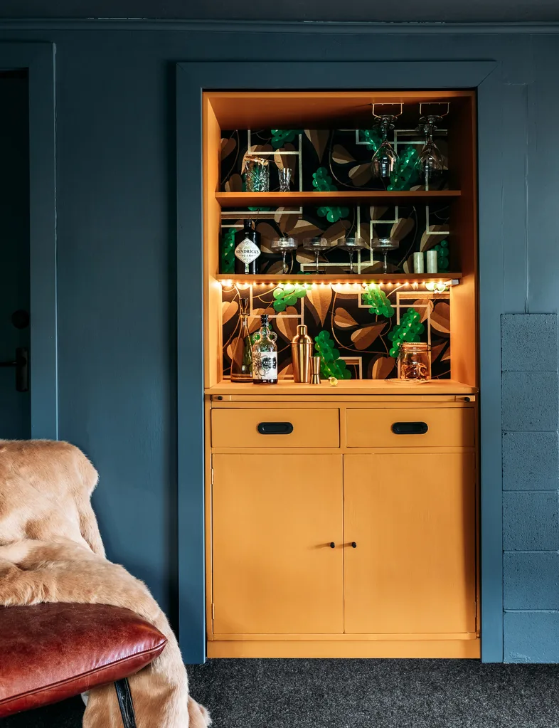 I wanted to create an elegant drinks bar set into an old cupboard, but I didn’t want to have to build something from scratch. My solution was to buy an old kitchen buffet found in a secondhand shop that had cupboards and shelving, and then upcycle it.