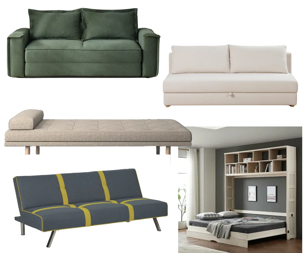 You can even buy ottomans and armchairs that open out into sofa beds with mattresses; these are perfect for single guests. For a couple, a sofa bed would work perfectly. If your mattress feels like it’s on the firm side, you can always bring in a mattress topper when the sofa is pulled out.