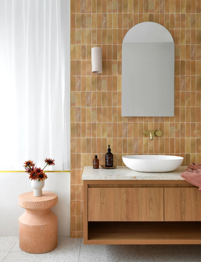 “We really appreciate seeing quirky details in smaller bathrooms, like small artworks or colourful tiles – embracing these fun elements can bring a sense of delight and shifts the focus away from the size of the space,” say Lara and Miranda. Let your personality shine with eccentric wallpaper or an eye-catching pendant light. After all, life’s too short not to embrace joy fully in every corner.