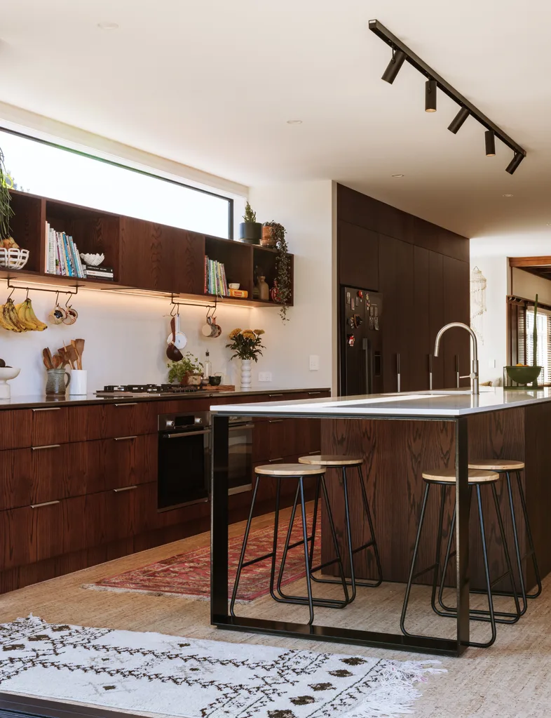 Think open shelves in the kitchen, bathroom and laundry, Additionally, installing hooks on the back of doors is another simple convenience often overlooked.