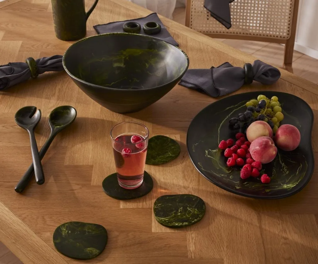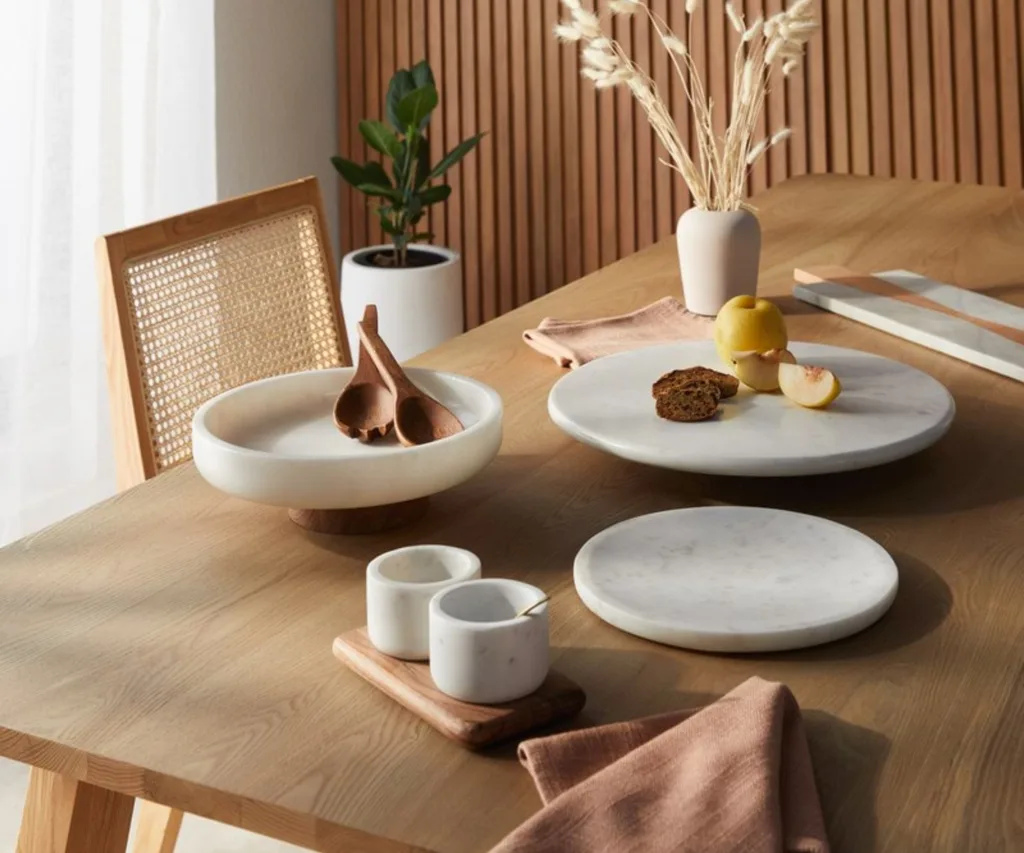 It’s the Codena fruit bowl. It may be called a fruit bowl but it’s actually a plate/platter. The marble brings that luxe element and the pedestal base brings the drama whether you’re serving a slice of cheese or cake.