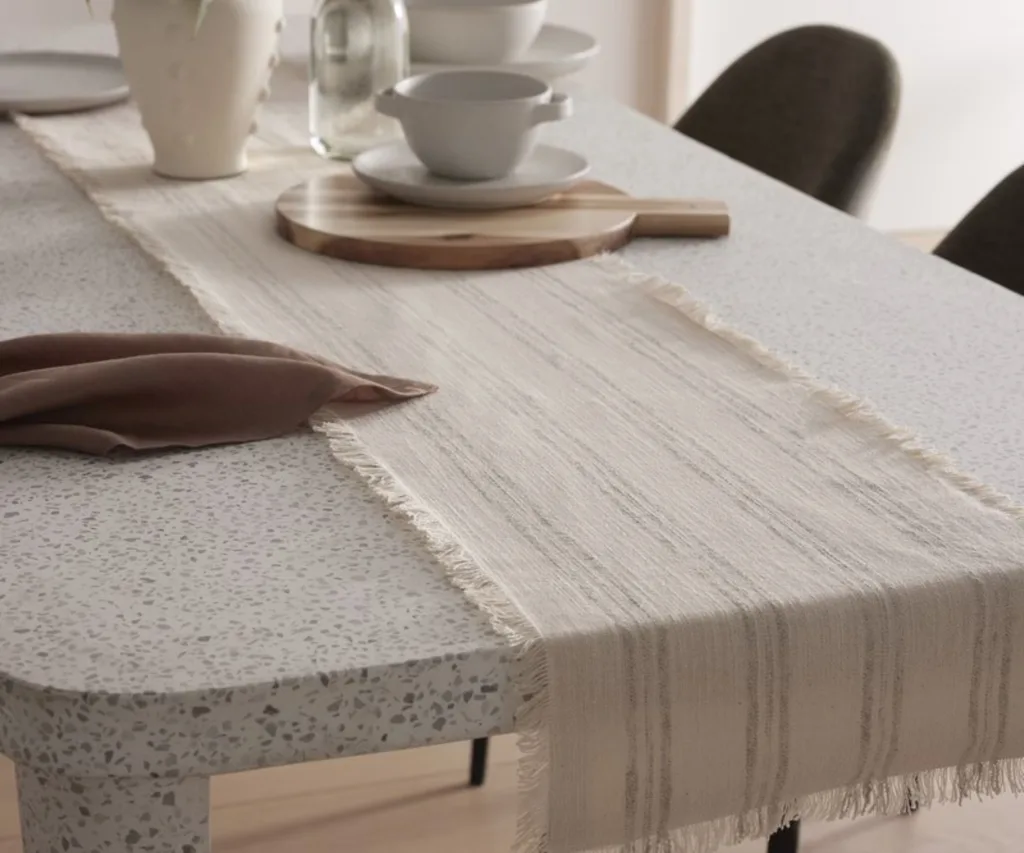 Crafted from textured natural fibres, this table runner adds a touch of organic elegance to your dining experience.