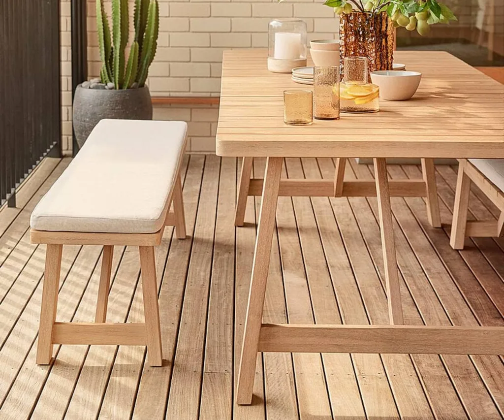 Transform your outdoor space into a sophisticated retreat with the Le Vent dining table. Create an inviting atmosphere for outdoor entertaining, making every gathering a stylish and inviting affair. Complete the set with the Le Vent dining bench ($699).